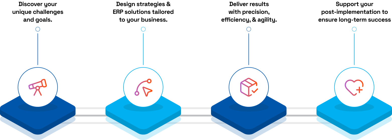 Expert guidance where it counts, making each step of your new ERP adoption clear and manageable!