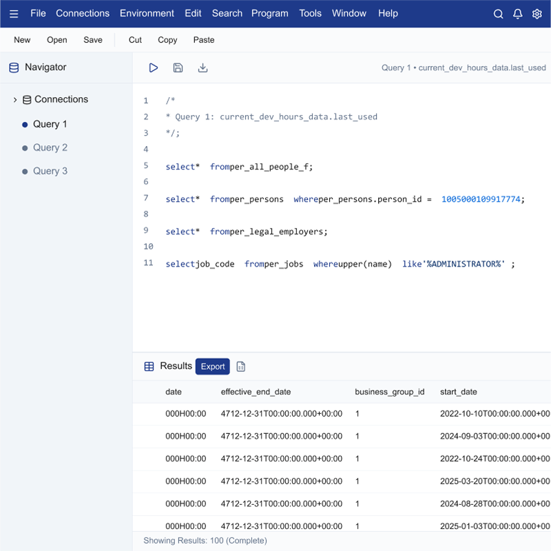 Work with your Oracle Cloud data instantly and securely. Query, filter, and export from