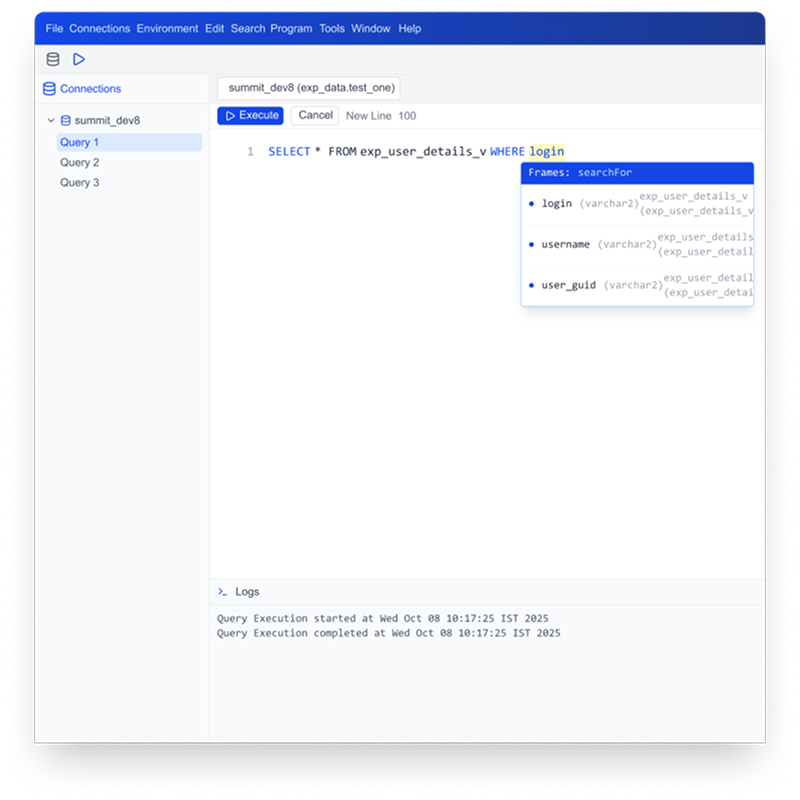 CloudMiner predicts and completes your commands as you type, helping you finish queries faster and with confidence.